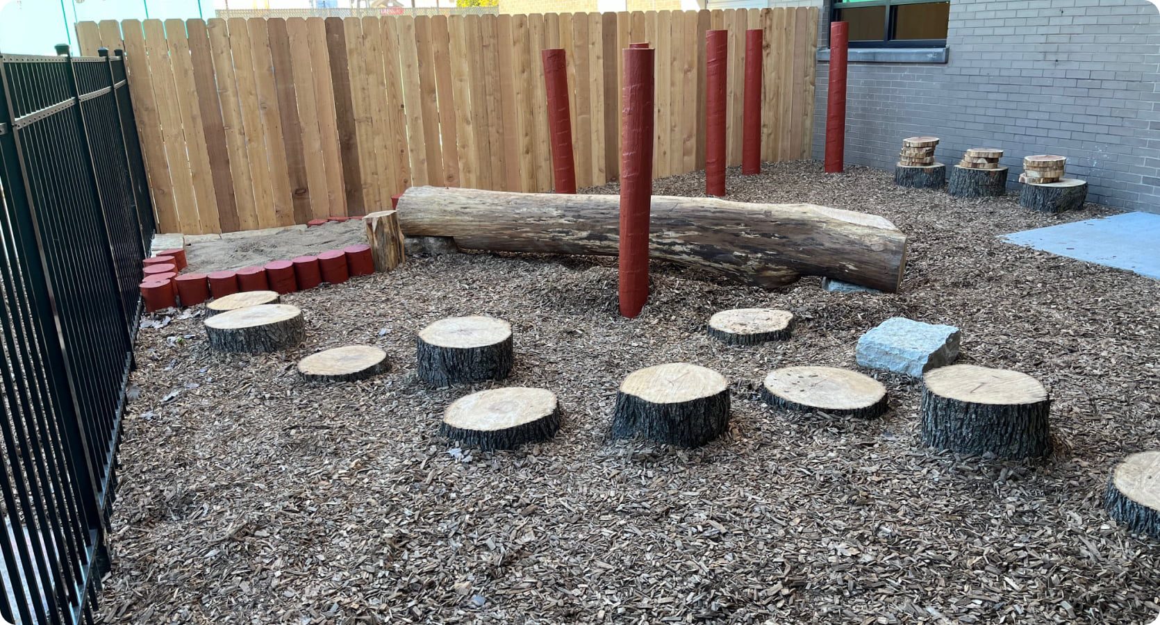 Catholic Charities prioritized creating an outdoor playspace on a site that didn’t previously have any space for a playground. Planting trees and including play features made from natural materials provided a respite amongst the urban environment.