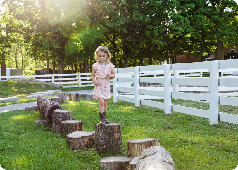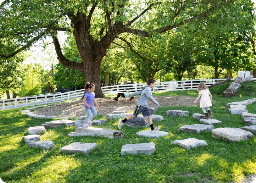 Shaker Village of Pleasant Hill, KY. A nature playscape that blends site-appropriate natural play elements within an historic Shaker community.