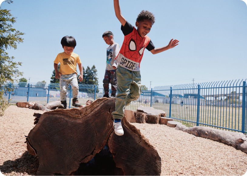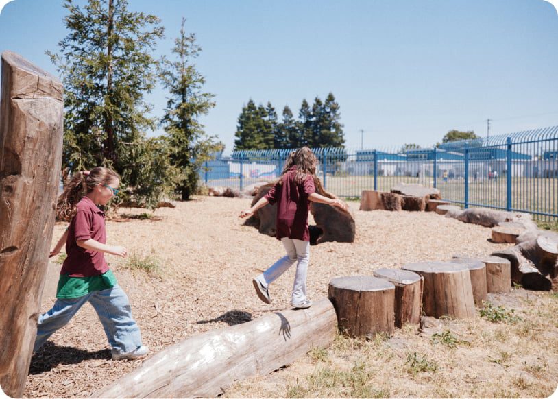 Stonehurst Elementary is a school in the Oakland Unified School District (OUSD) in Oakland, California. Our design team was called out to work on this nature playground project by KABOOM!, a national nonprofit committed to ending playspace inequity. Because of the Children At Play Network’s expertise in creating nature play spaces, we were identified as the partner to be brought in to consult with KABOOM! to help the OUSD in their goal to put nature exploration areas in every playground in their district.