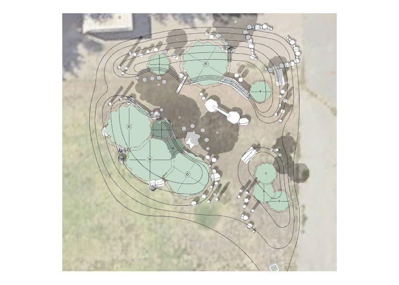 This site plan utilizes software that can  provide site-specific solar analysis to determine where new trees should be planted on the playspace for optimal shading.