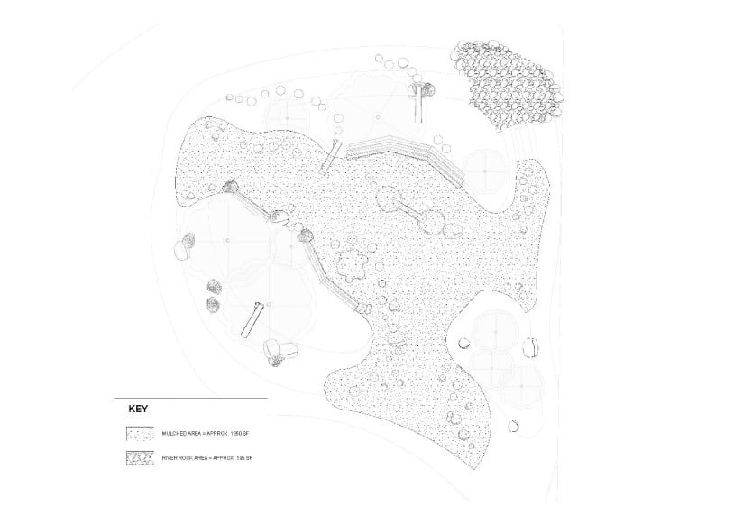 Our Team shows where different surface materials are recommended to enhance accessibility needs, plant health, and to provide fall zones for play elements.